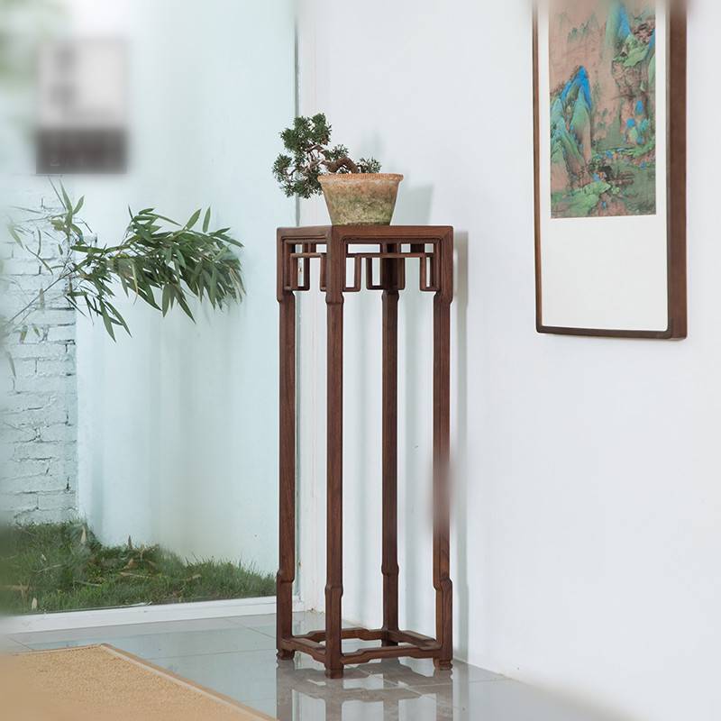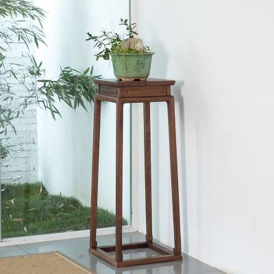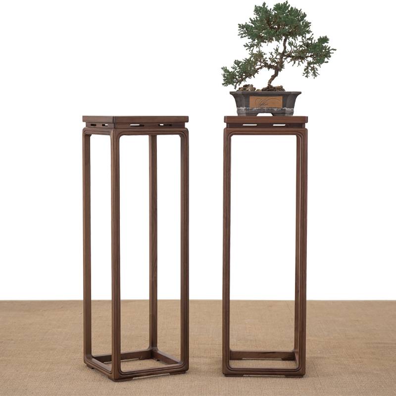 新中式花架花几盆景架黑胡桃置物架禅意老榆木实木仿古室内边几