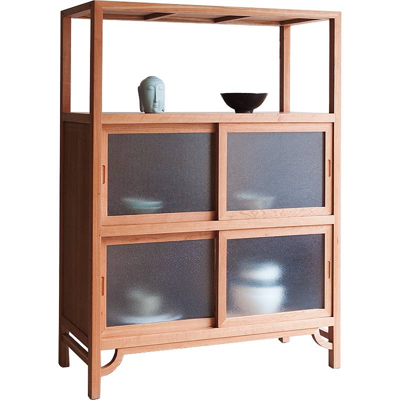 新中式餐边柜黑胡桃樱桃木实木收纳储物柜现代简约茶水柜