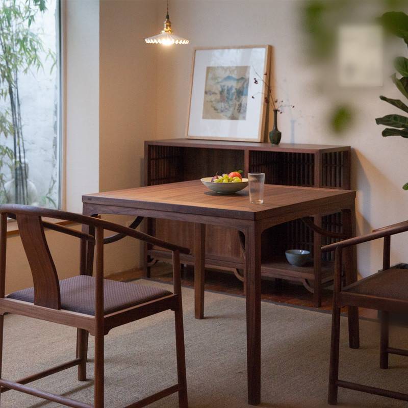 弦方餐桌 新中式实木黑胡桃木家用小户型方桌茶桌八仙桌