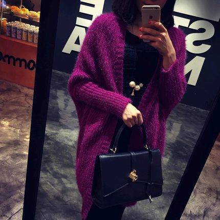 S114 秋冬新款针织衫女外套 宽松蝙蝠袖披肩毛衣开衫大码女装