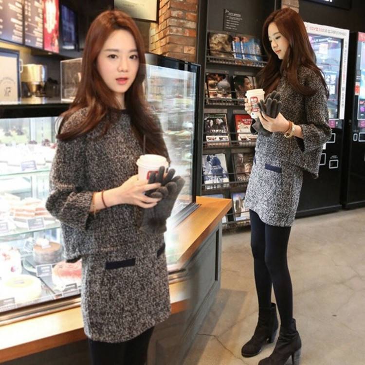 2018春秋冬季新款韩版女装显瘦两件套套装裙子七分袖上衣连衣裙