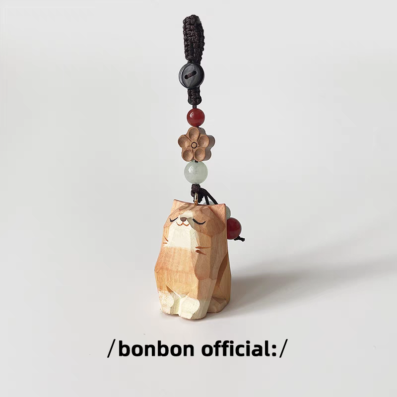 手工木雕猫咪桃木梅花编织钥匙扣汽车书包挂件精致挂饰