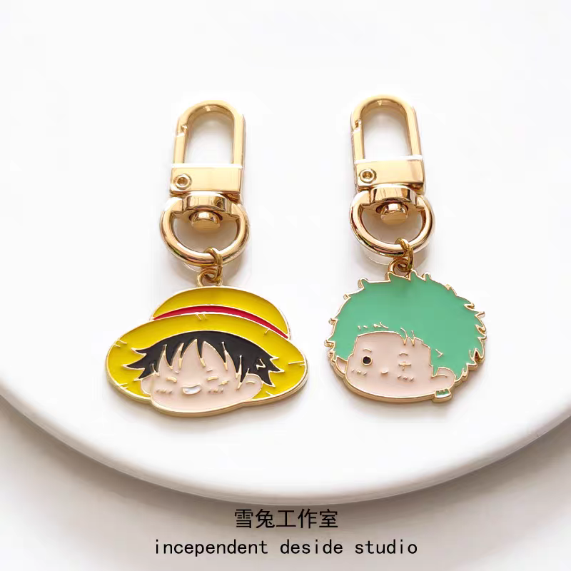 日系个性创意动漫海贼王钥匙扣草帽路飞索隆airpods包包金属挂扣