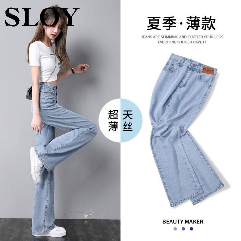 2020春夏新款批发松紧腰高腰牛仔裤女宽松直筒显瘦阔腿长裤