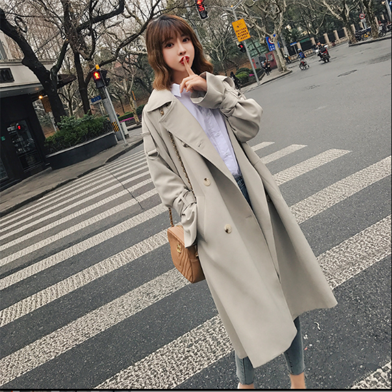 chic2018新款女韩版薄款中长款风衣外套网红秋季裙摆过膝中长款港风复古