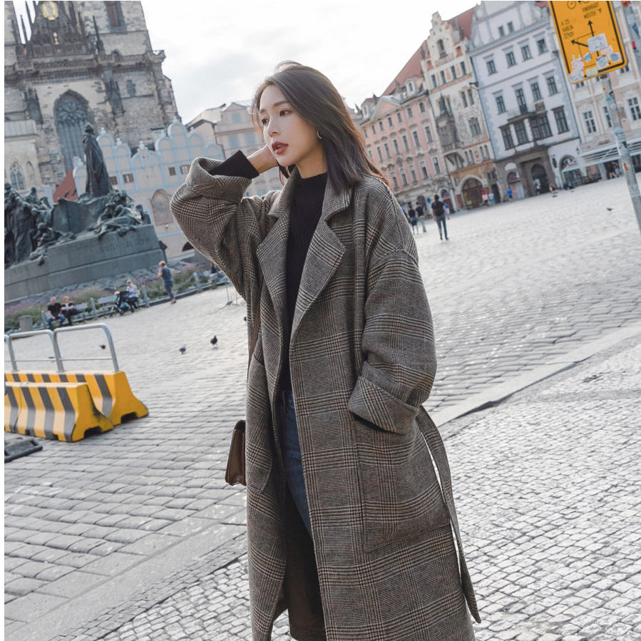 2018流行大衣新款呢子中长款女赫本格子森系毛呢外套冬季保暖文艺