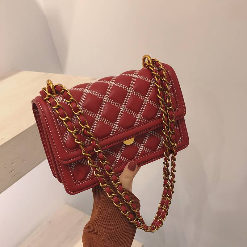 红色车缝线菱格包包女2018新款时尚链条女包单肩包斜跨包 130.00 已售:0件