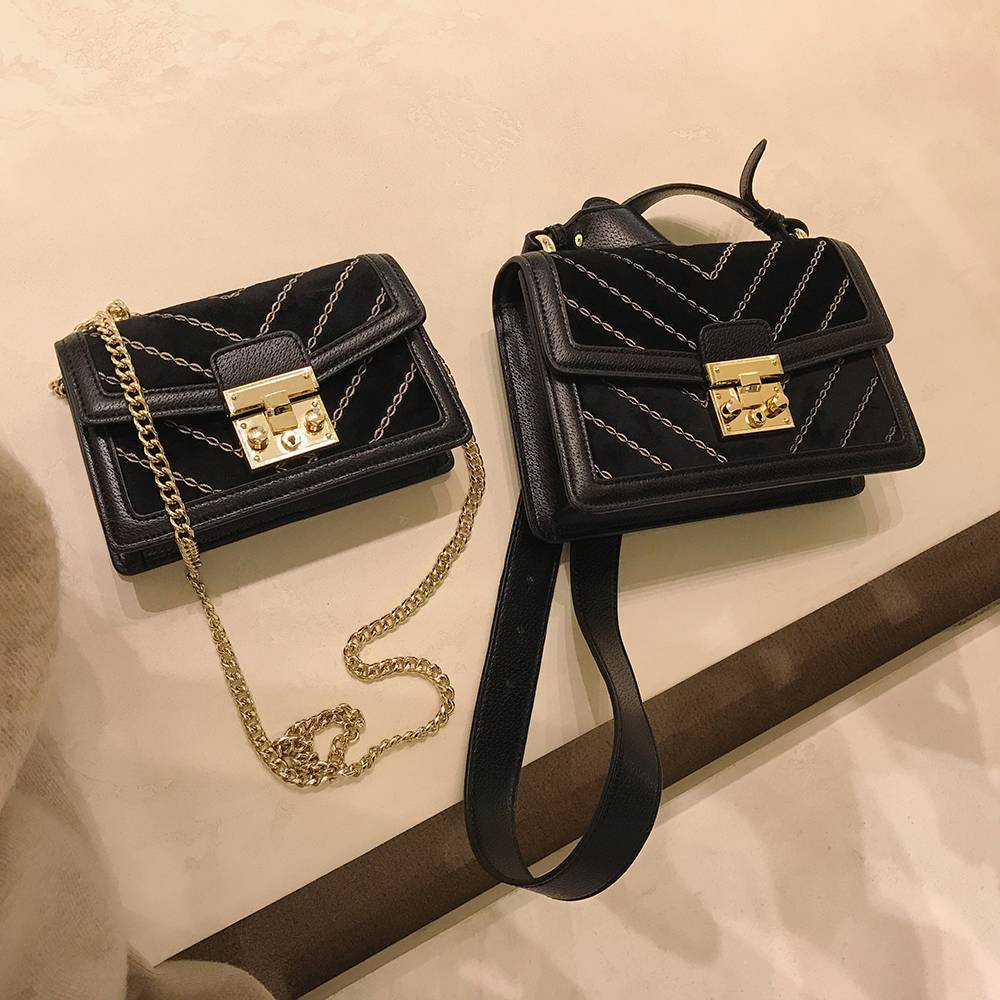 绒面刺绣斜纹链条包包女2018新款女包单肩包斜跨包小方包 130.00 已售:0件