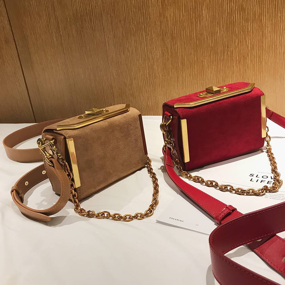 红色复古锁扣盒子小方包链条包包女包宽肩带单肩包斜挎包 169.00 已售:0件