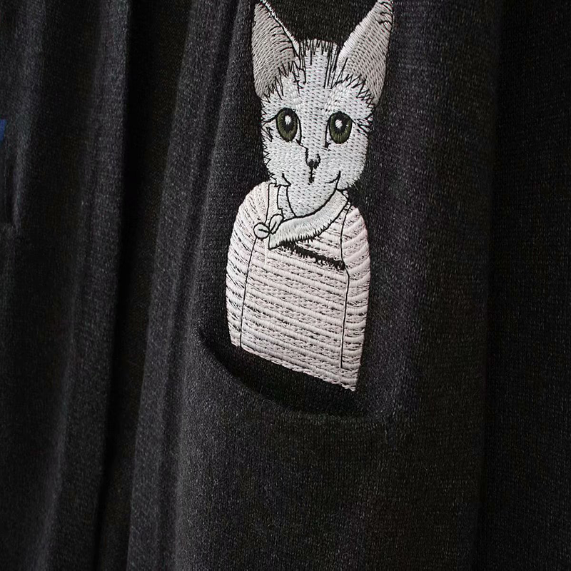 女装大牌清仓尾货口袋猫刺绣开衫针织衫宽松毛衣