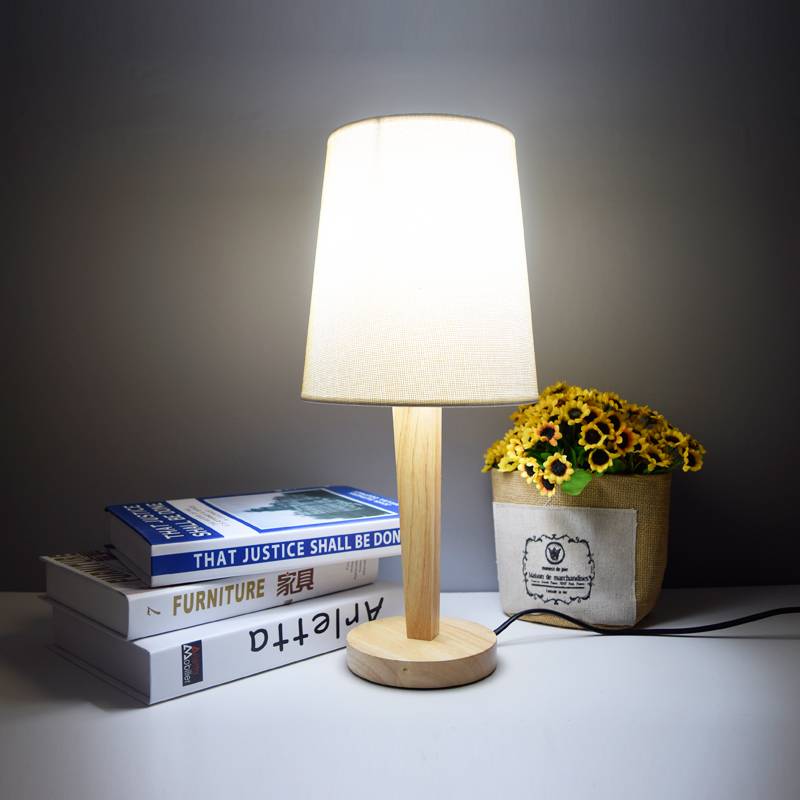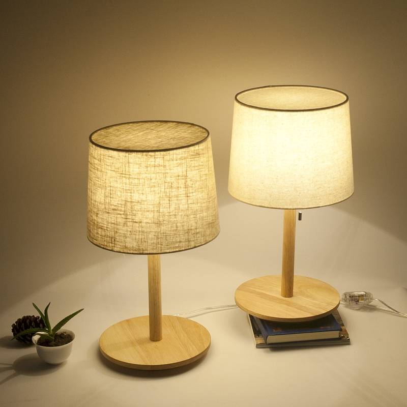 床头台灯实木日式简约无印风格客厅卧室原木质装饰布罩式调光台灯