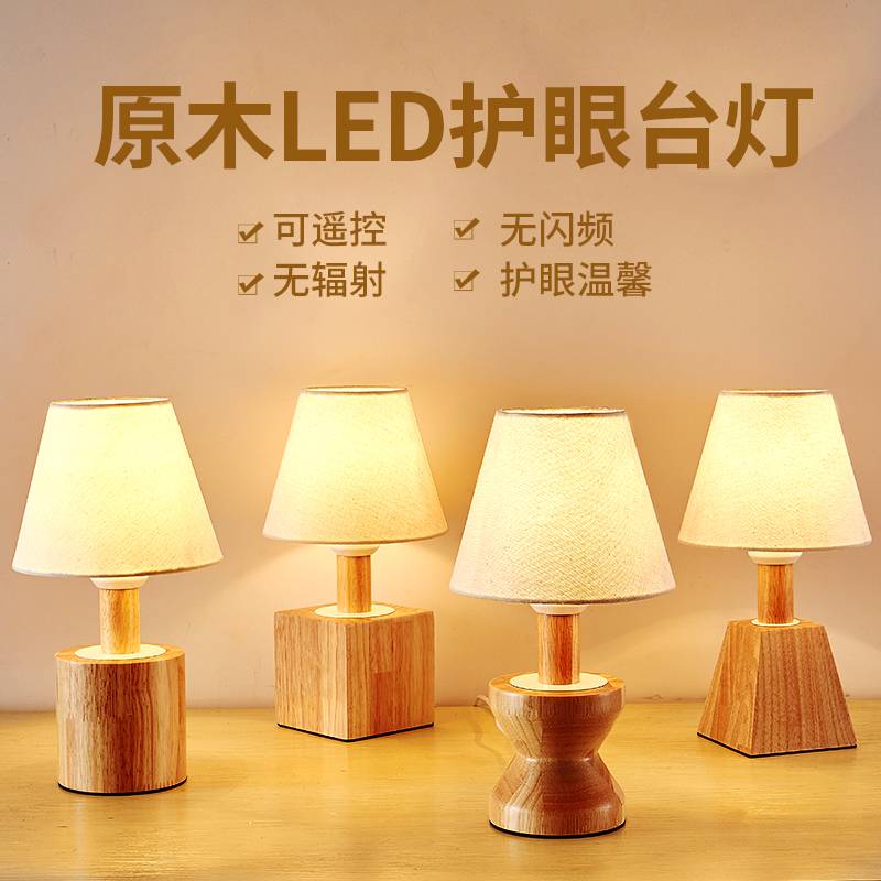 北欧简约创意实木台灯装饰酒店客房书桌卧室床头灯遥控调光喂奶灯