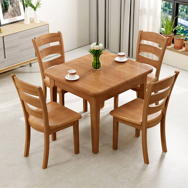 实木餐桌椅组合现代简约小户型餐桌可伸缩全实木折叠饭桌4人家用