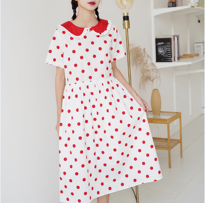 红色波点棉布连衣裙2018夏季新品女