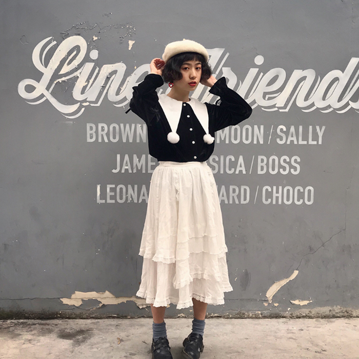 毛球衬衫黑色显瘦2018新品宽松女复古