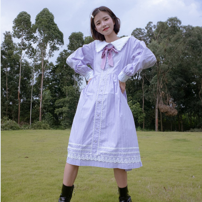 2018年原宿萝莉丁香紫连衣裙秋季新品女