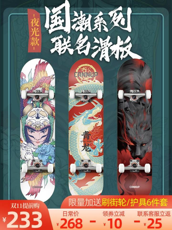 初学者 专业滑板成人男女生青少年刷街四轮双翘滑板车国风时尚潮