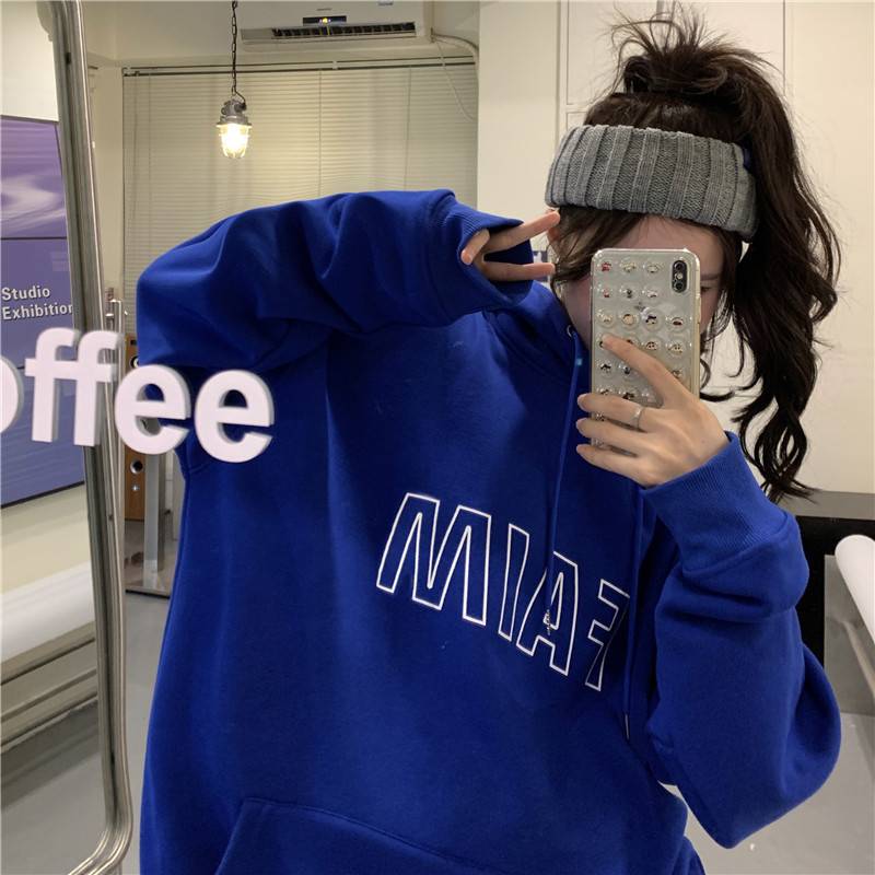 秋冬加绒加厚卫衣女连帽衫韩版学生宽松大码长袖上衣外套