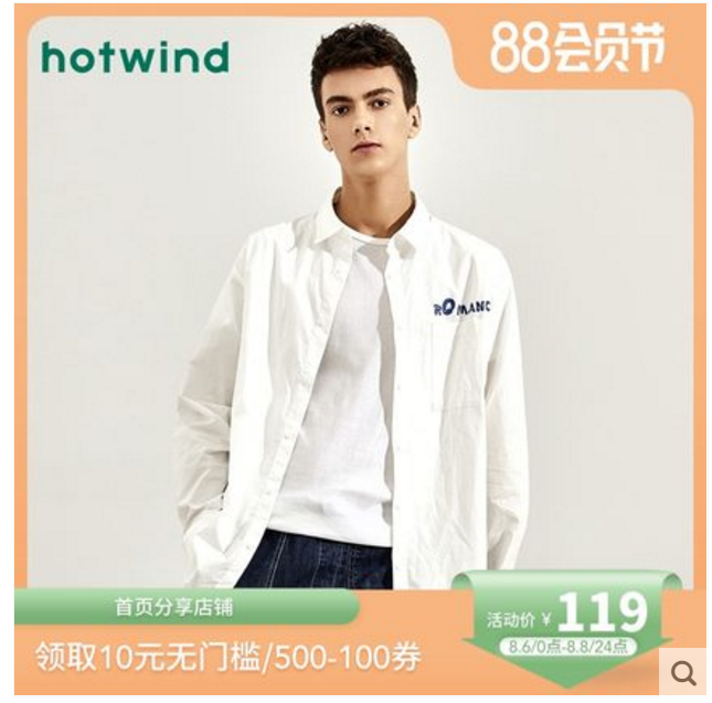 热风新款潮流时尚男士宽松衬衫方领长袖上衣F02M9308