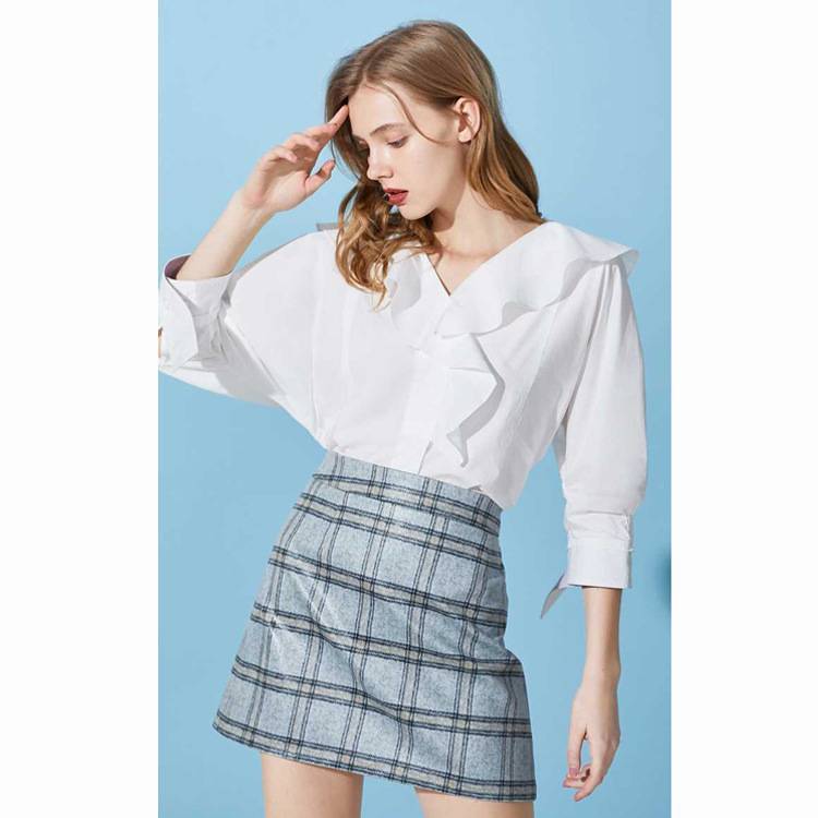 OL 2020夏季新款不对称荷叶边洋气复古气质衬衫女 120158503