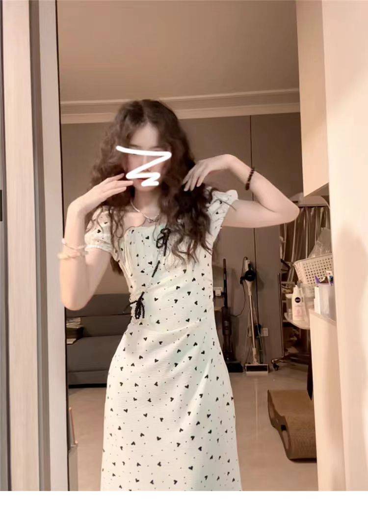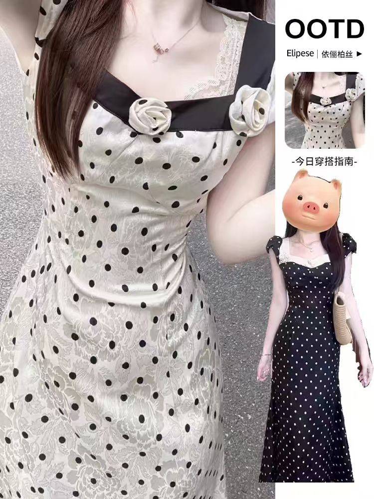 法式泡泡袖波点连衣裙子女夏季2024新款高级感超好看收腰鱼尾长裙