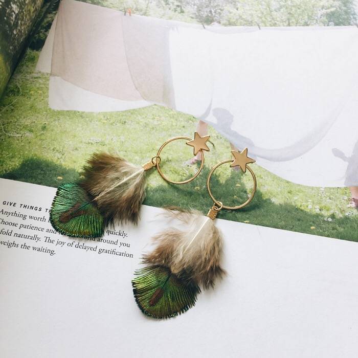 Dear织梦 梦在热带雨林 新款异域风情创意星星羽毛防过敏耳钉
