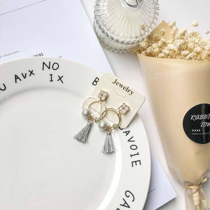 Dear织梦 花房姑娘 韩国镶钻流苏圆圈耳环个性气质珍珠防过敏创意耳钉