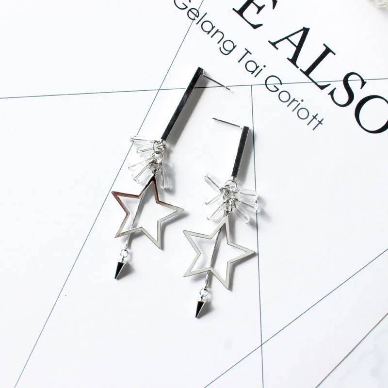 Dear织梦 北极星的眼泪 个性星星后挂式不对称创意金属条耳钉