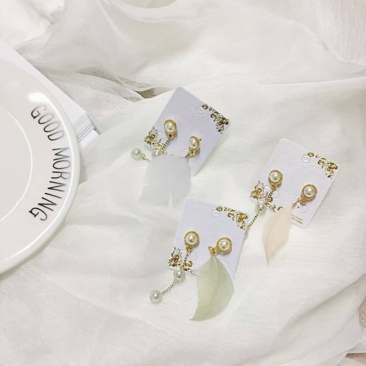 Dear织梦 梦中的纯白天鹅 创意梦幻珍珠羽毛创意手作耳钉