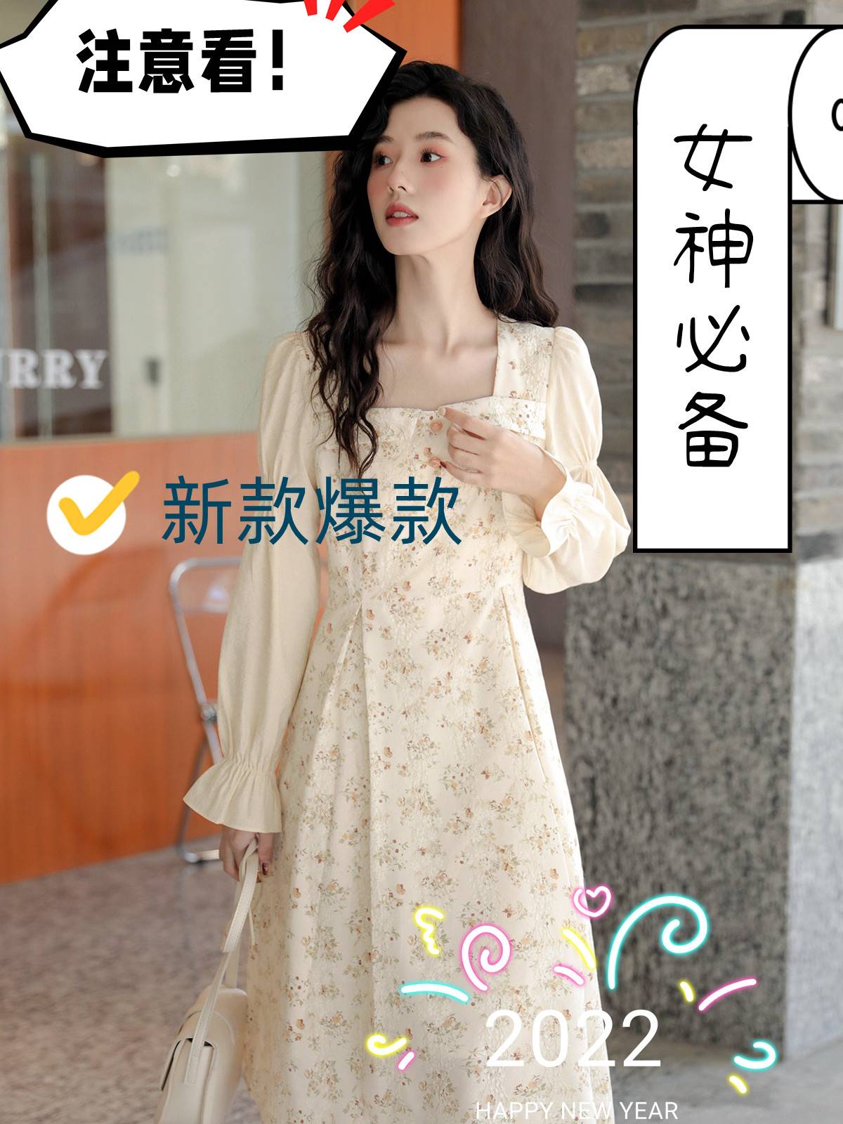 2022春夏爆款碎花白色百搭连衣裙性感纯欲风法式甜美