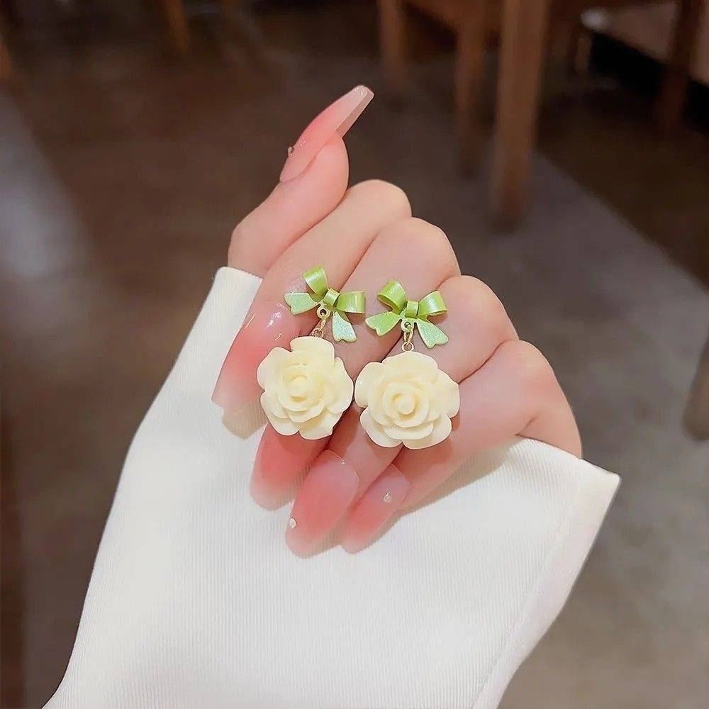 夏日的颜色蝴蝶结花朵耳钉小清新温柔风简约百搭少女耳环耳夹饰品