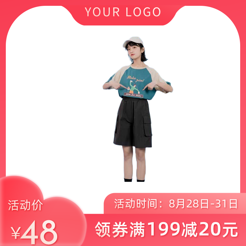 松紧腰直筒裤工装短裤女宽松日系中性韩版潮学生运动五分裤子女夏 48.00 已售:0件