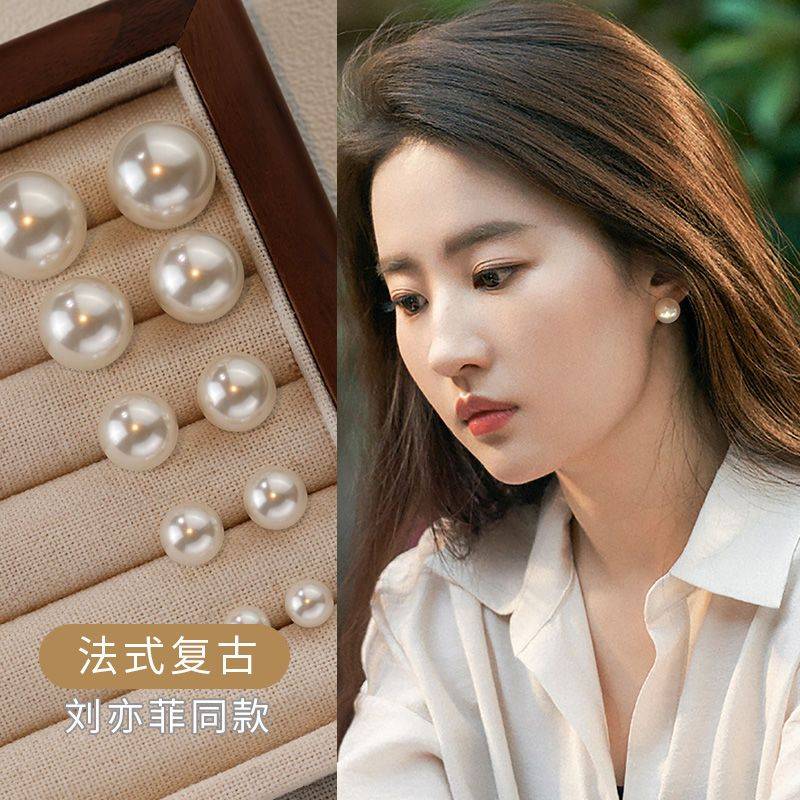 强光正圆施家大珍珠耳夹无耳洞女高级感气质高档耳钉复古气质耳饰