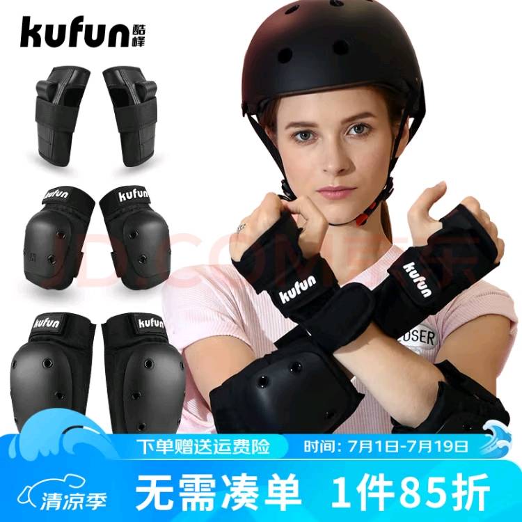 酷峰(kufun)轮滑护具全套头盔套装防护溜冰滑板滑雪陆冲板骑行成人儿童男女 6件套 黑色护具 L适合115至155斤