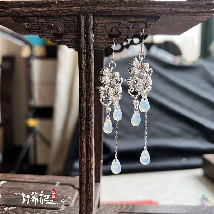 盛京诗篇记925银钩手工复古风耳环宋制流苏水滴耳坠汉服配饰国风