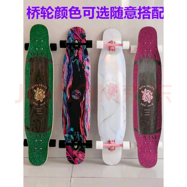 ZBOARDS木毒雅典娜长板黑耀板女生初学者男代步玻纤舞板平花滑板 113cm 黑曜 电镀桥白轮