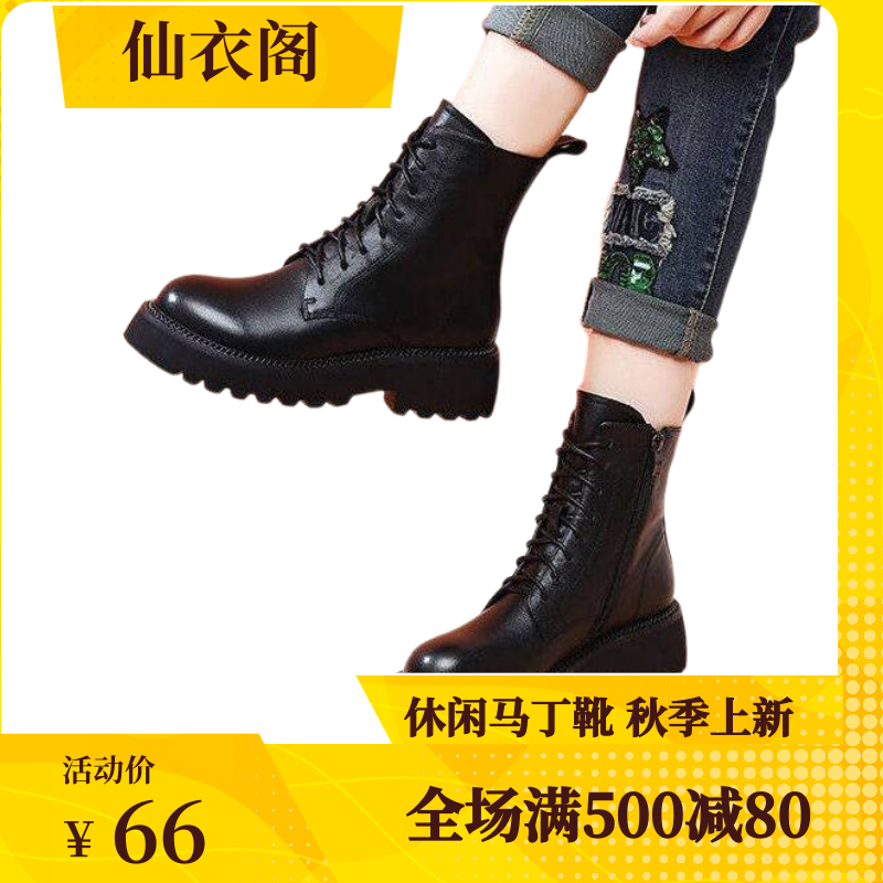 真皮马丁靴女英伦风2020秋冬透气帅气薄款百搭单靴显脚小厚底短靴 66.00 已售:0件