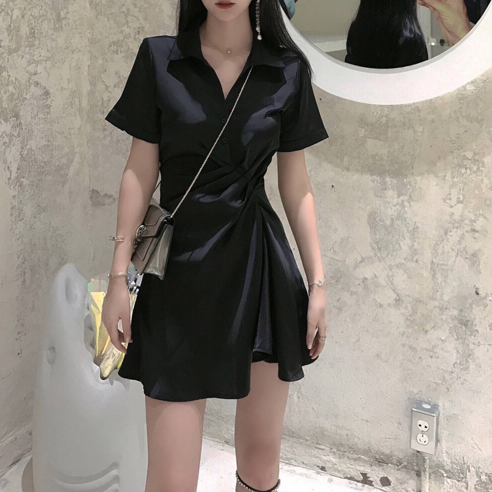 法式复古长袖连衣裙新款早秋韩国黑裙宽松女装