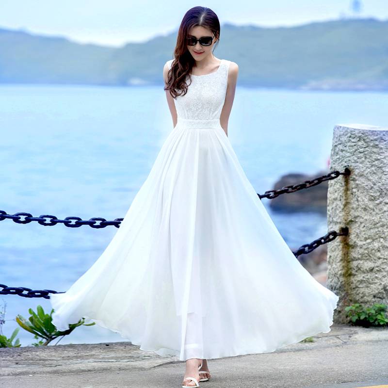 波西米亚白色连衣裙雪纺女夏大摆裙子高端2021新款沙滩裙长裙脚踝