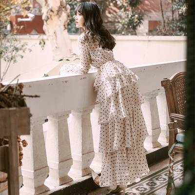 维多利亚复古裙灯笼袖波点法国小众连衣裙度假沙滩仙女长裙礼服女