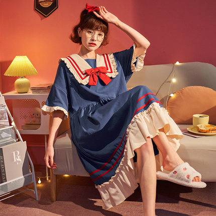 2021年新款夏天睡衣女士纯棉短袖春夏季睡裙可爱网红爆款大码孕妇