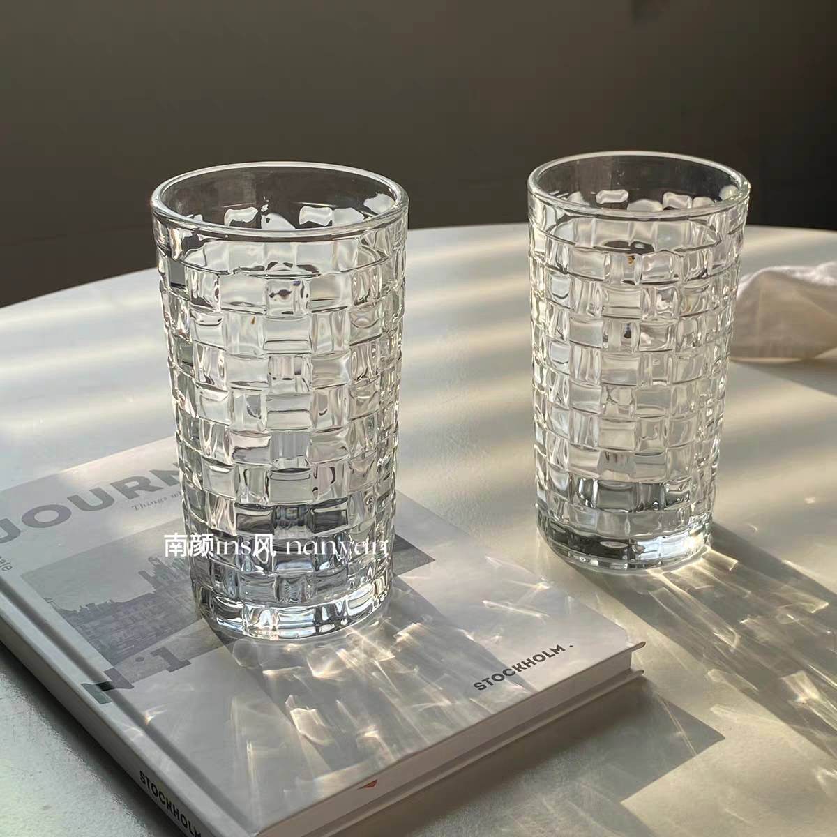藤编玻璃杯ins风清新森系家用浮雕水杯果汁咖啡冷饮创意网红博主