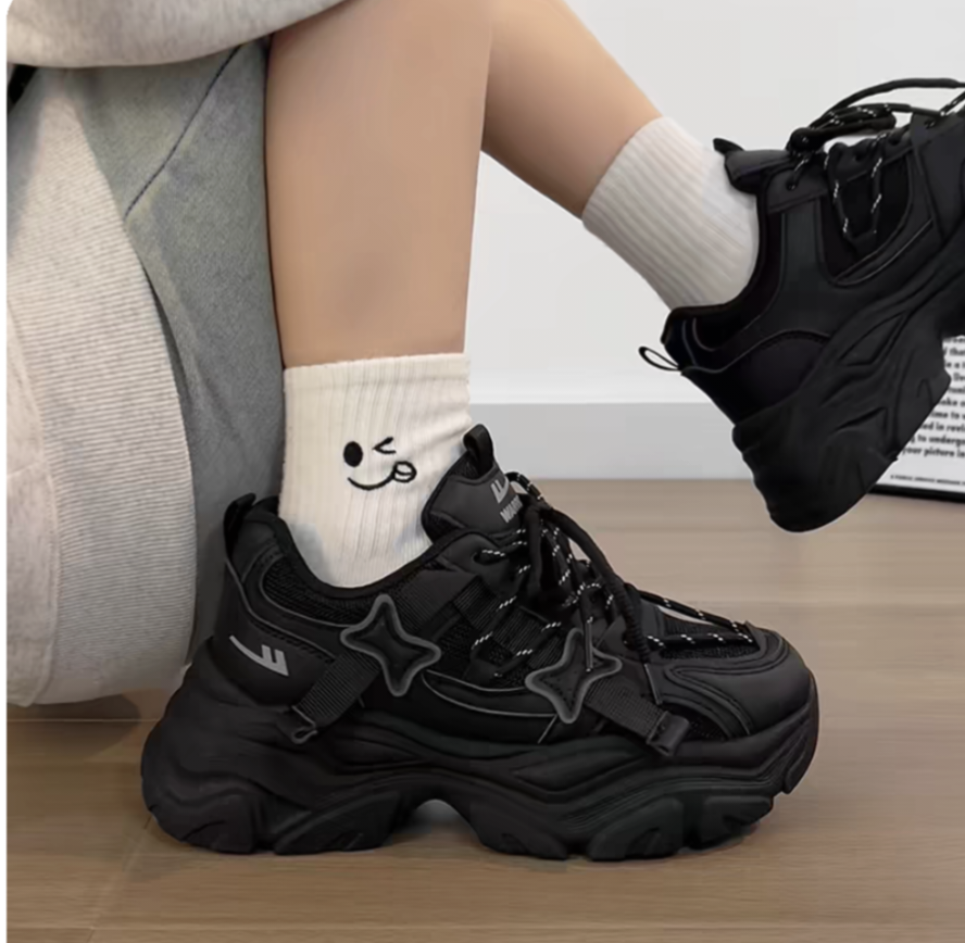 回力黑色运动鞋女款鞋子春季新款百搭ins潮软底增高厚底老爹鞋女