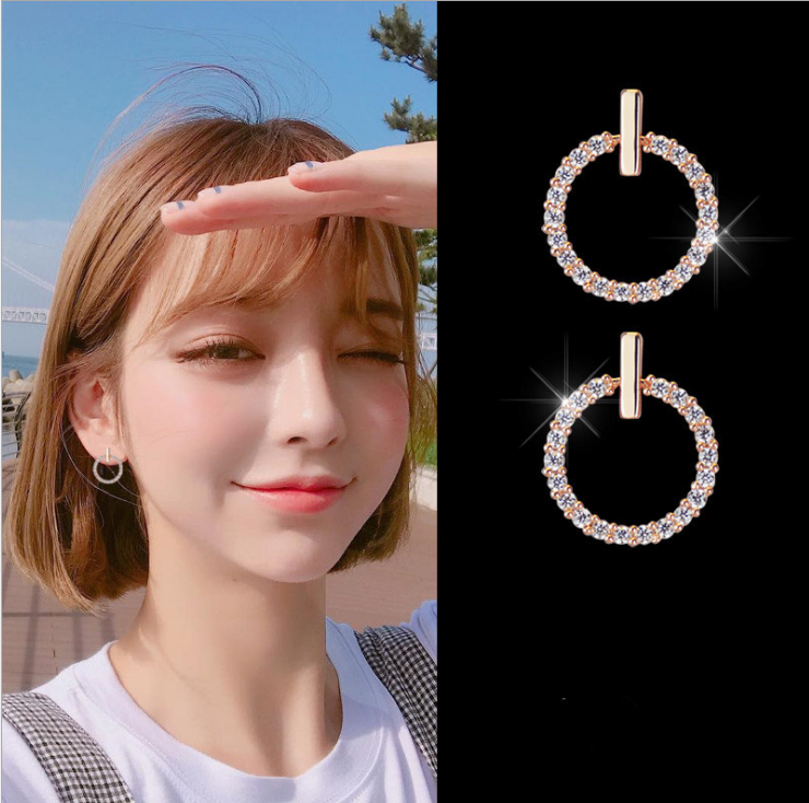 耳钉S925银针女气质韩国个性简约耳环防过敏圆圈镶钻迷你小耳坠女