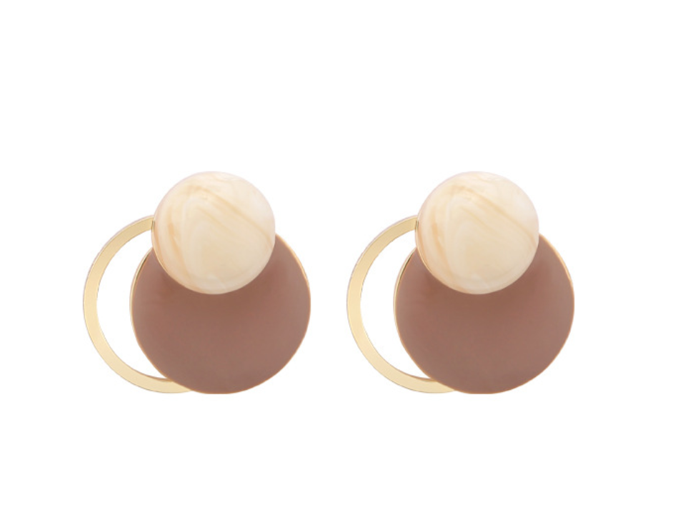 温柔复古风琥珀纹耳环女韩国个性百搭耳钉几何设计感耳饰耳夹R289
