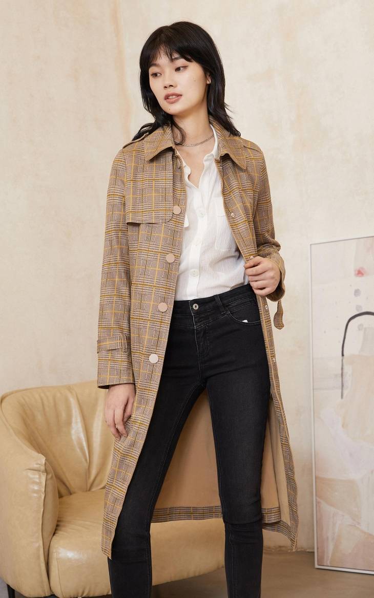 ONLY2020秋季新款气质英伦风中长款格子直筒风衣外套女