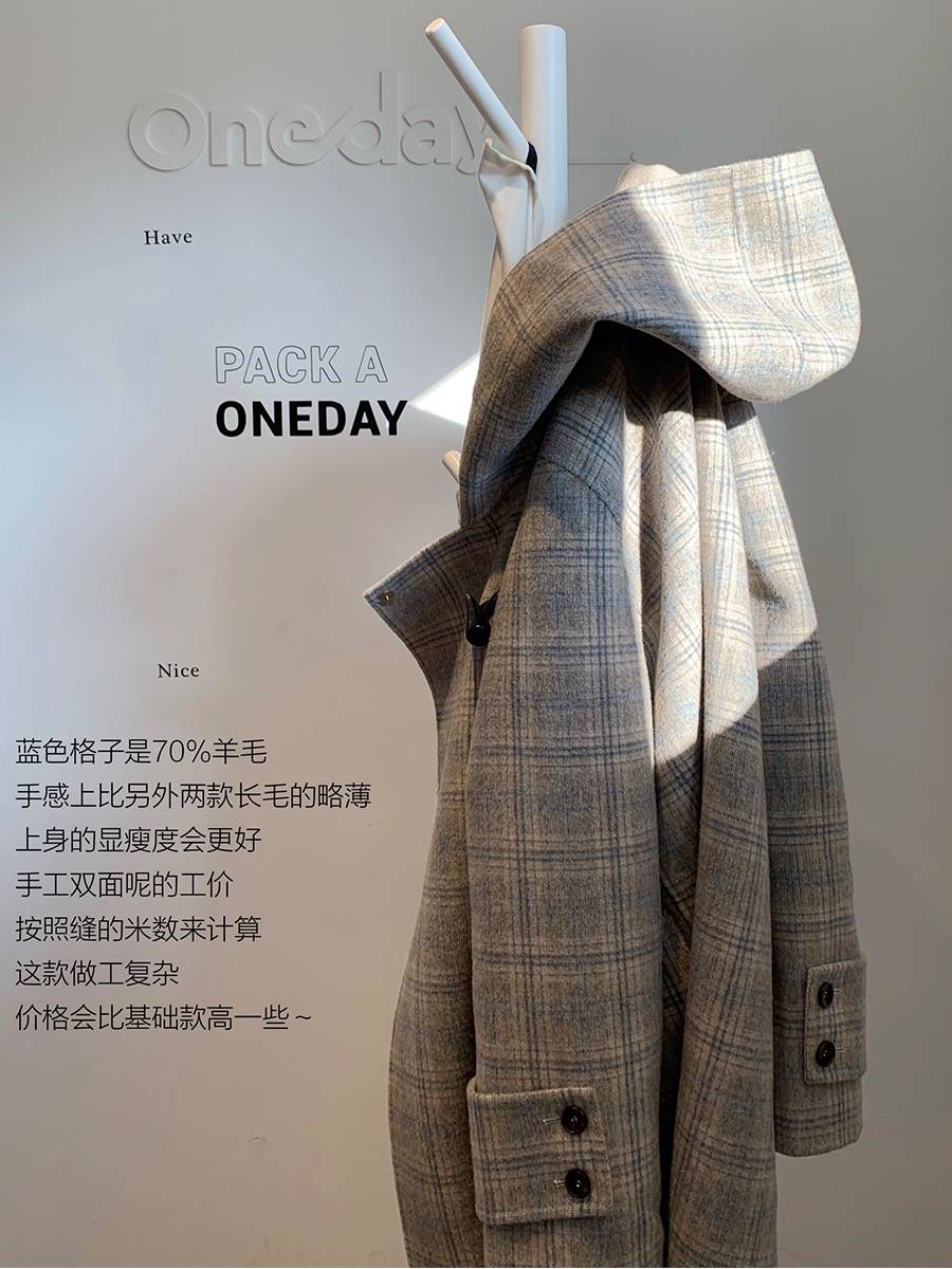 诚恳安利!可爱有钱又有品位系列 绝美格纹Du家牛角扣双面呢大衣