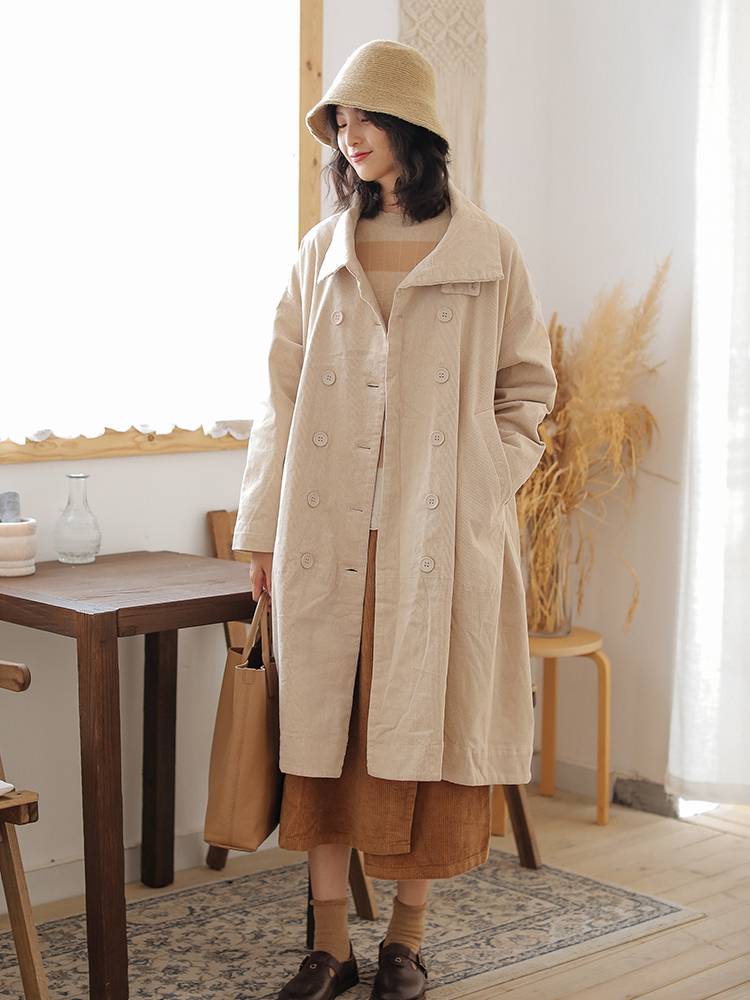 可然出品 皎然/chao气质大衣!定制纯棉灯芯绒风衣女外套有内衬