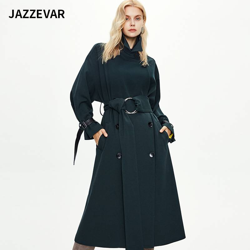 嘉泽华2020秋冬新品加长款过膝欧美网红女士圆环风衣女