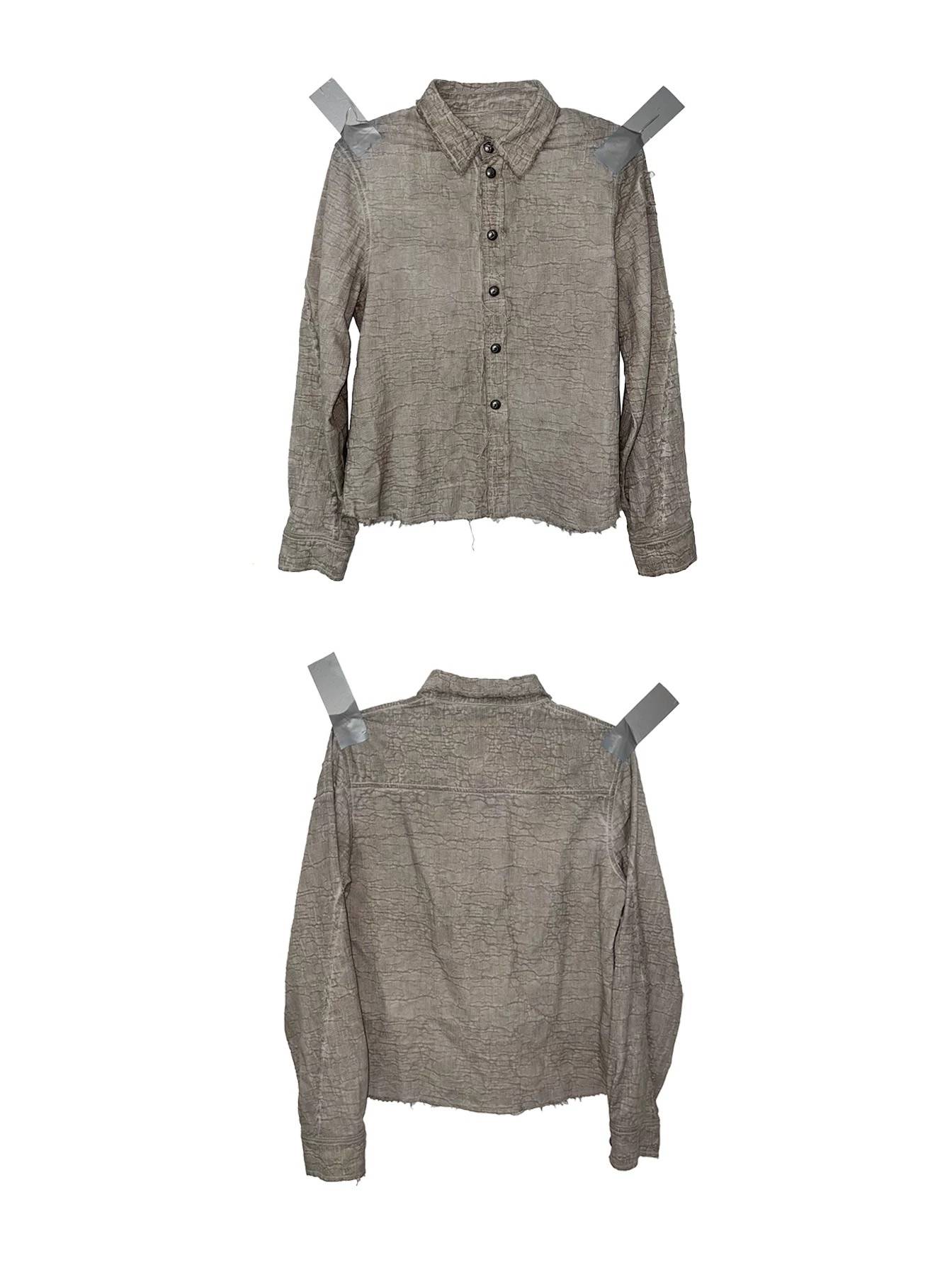 no E mosen* “棺木”染色木纹肌理长袖流苏正肩版型衬衫 328.00 已售:0件